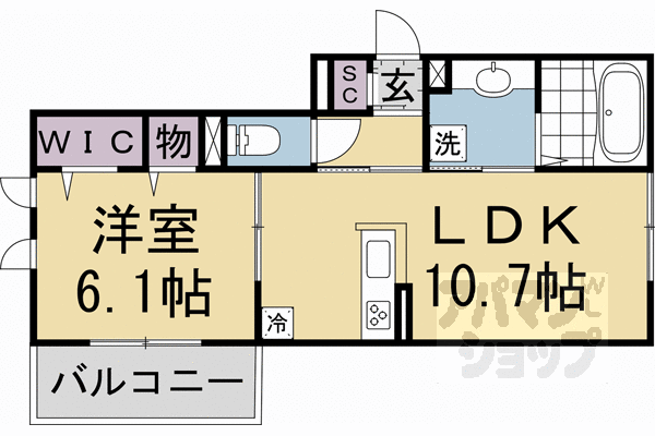 ■1LDK:洋6.1×LDK10.8(41.12㎡)(家賃9.6~9.9万円)
