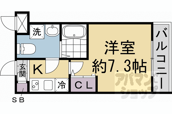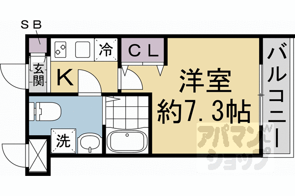 ■1K:洋7.3×K2(22.35 ㎡)