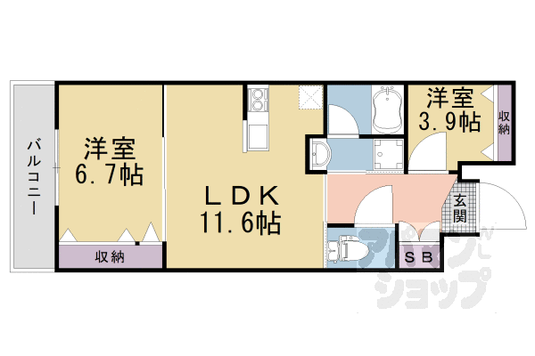 ■2LDK:洋6.7×洋3.9×LDK11.6(50.22㎡)(家賃12.0~12.4万円) -