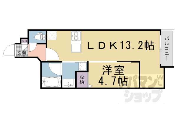 ■1LDK:洋4.7×LDK13.2(39.46㎡)(家賃9.2万円)