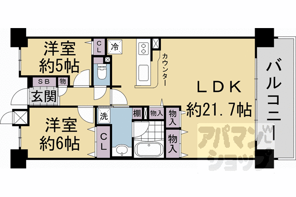 ■2LDK:洋6×洋5×LDK21.7