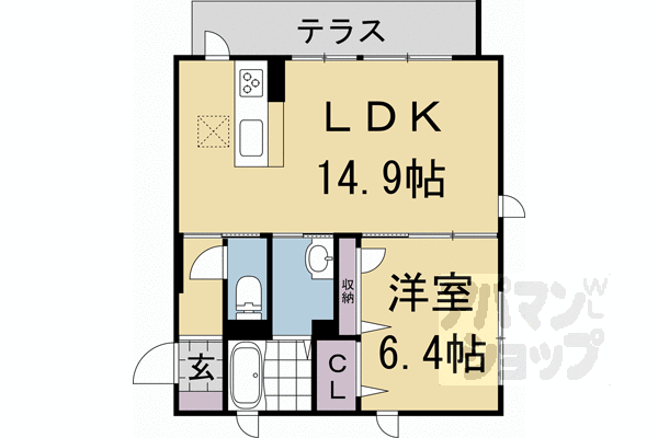 ■1LDK:洋6.4×LDK14.9(49㎡) -
