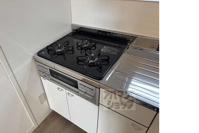 公営水道, プロパンガス, 下水, 専用バス, 専用トイレ, バス・トイレ別, シャワー, ガスコンロ, コンロ三口, システムキッチン, 給湯, シャンプードレッサー, エアコン, 室内洗濯機置場, CATV, エレベーター, バルコニー, フローリング, 駐輪場あり, 光ファイバー, TVドアホン, 温水洗浄便座, 独立洗面台, ペット相談, ネコ可, 小型犬可