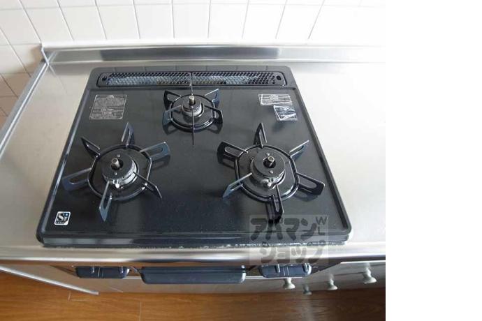 公営水道, 都市ガス, 下水, 専用バス, 専用トイレ, バス・トイレ別, シャワー, ガスコンロ, コンロ三口, システムキッチン, 給湯, シャンプードレッサー, エアコン, 室内洗濯機置場, バルコニー, フローリング, 駐輪場あり, バイク置き場あり, 光ファイバー, 角部屋, TVドアホン, 独立洗面台, シューズボックス, 2人入居可
