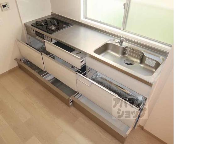 公営水道, 都市ガス, 下水, 専用バス, 専用トイレ, バス・トイレ別, シャワー, ガスコンロ, コンロ三口, システムキッチン, 給湯, シャンプードレッサー, ウォークインクローゼット, 室内洗濯機置場, エレベーター, 専用庭, バルコニー, フローリング, 駐輪場あり, 光ファイバー, 角部屋, TVドアホン, 独立洗面台, 防犯カメラ, インターネット利用料無料, 2人入居可