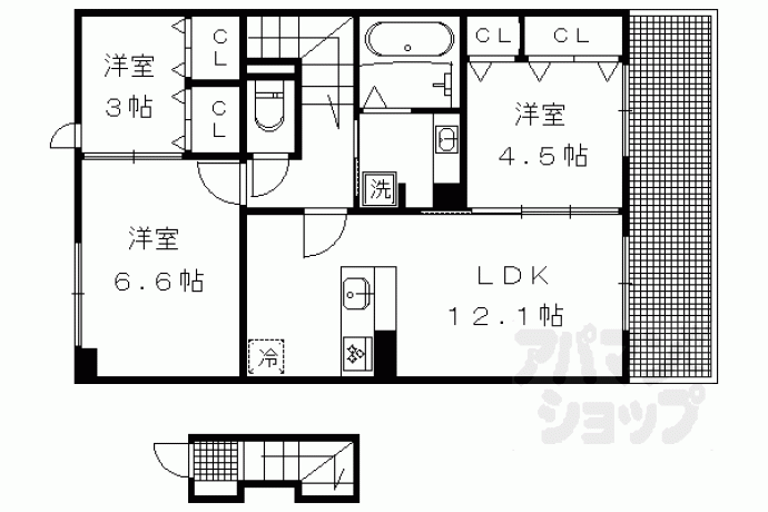 洋6.6×洋4.5×洋3×LDK12.1
