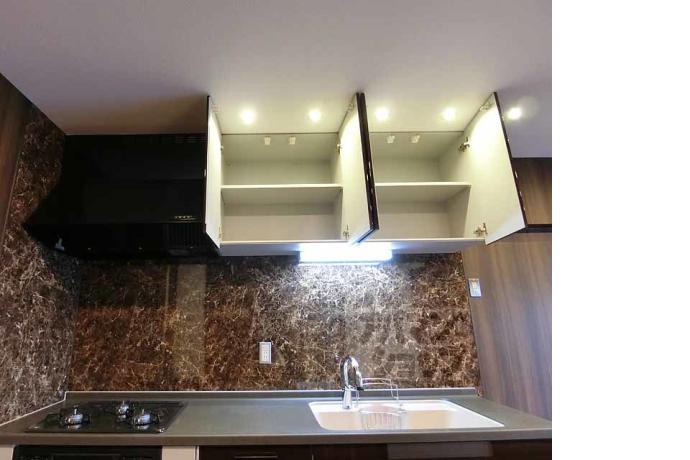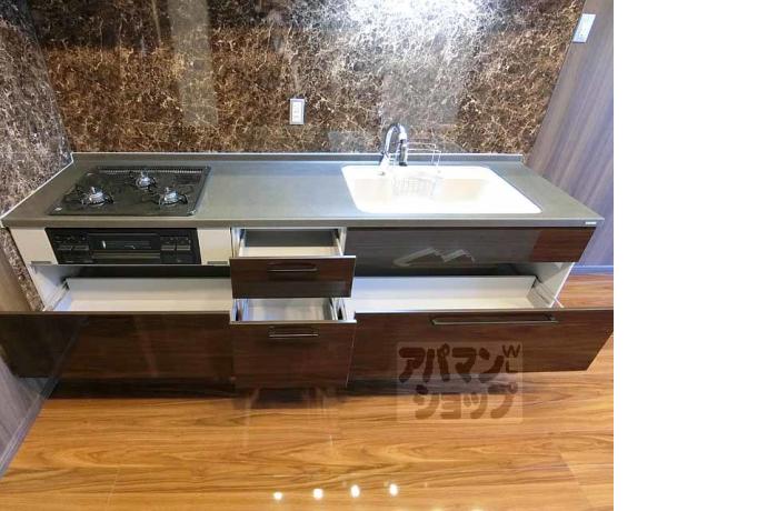 公営水道, 都市ガス, 下水, 専用バス, 専用トイレ, バス・トイレ別, シャワー, ガスコンロ, コンロ三口, システムキッチン, 給湯, シャンプードレッサー, エアコン, 室内洗濯機置場, エレベーター, バルコニー, フローリング, 駐輪場あり, バイク置き場あり, 光ファイバー, TVドアホン, 温水洗浄便座, 敷地内ゴミ置場, 独立洗面台, 照明, シューズボックス, 2人入居可