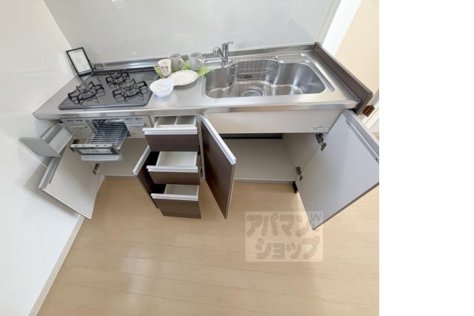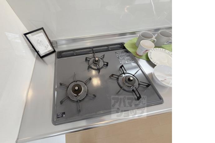 公営水道, 都市ガス, 下水, 専用バス, 専用トイレ, バス・トイレ別, シャワー, ガスコンロ, コンロ三口, システムキッチン, 給湯, シャンプードレッサー, エアコン, 室内洗濯機置場, CATV, バルコニー, フローリング, 光ファイバー, 角部屋, TVドアホン, 独立洗面台, インターネット利用料無料, カードキー, シューズボックス, 2人入居可