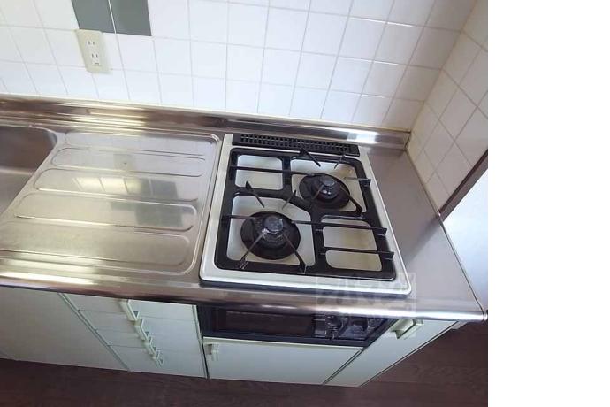 公営水道, 都市ガス, 下水, 専用バス, 専用トイレ, バス・トイレ別, シャワー, ガスコンロ, コンロ二口, システムキッチン, 給湯, エアコン, BSアンテナ, オートロック, バルコニー, フローリング, 駐輪場あり, 光ファイバー, 角部屋, 2人入居可