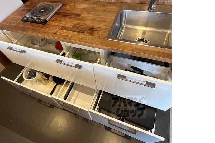 公営水道, 都市ガス, 下水, 専用バス, 専用トイレ, バス・トイレ別, シャワー, IHコンロ, システムキッチン, 給湯, エアコン, 室内洗濯機置場, フローリング, 冷蔵庫あり, 駐輪場あり, 角部屋, 温水洗浄便座, 独立洗面台, 2人入居可