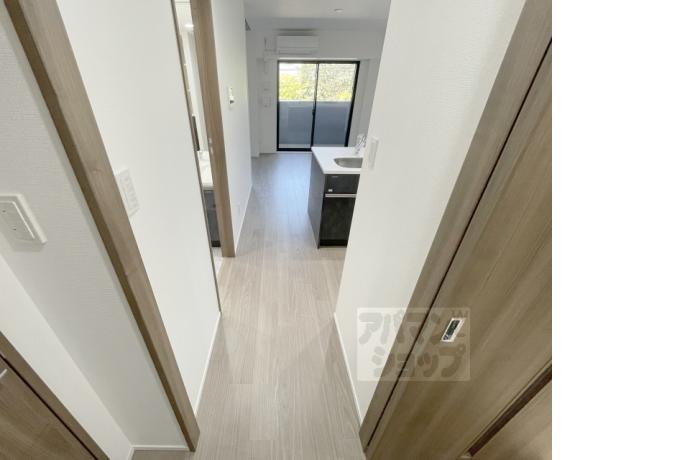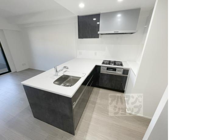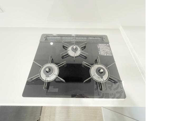 公営水道, 都市ガス, 下水, 専用バス, 専用トイレ, バス・トイレ別, シャワー, ガスコンロ, コンロ三口, システムキッチン, 給湯, シャンプードレッサー, エアコン, 室内洗濯機置場, オートロック, バルコニー, フローリング, 宅配ボックス, 駐輪場あり, 光ファイバー, TVドアホン, 温水洗浄便座, 浴室乾燥機, 独立洗面台, シューズボックス