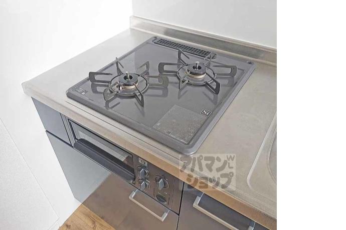 公営水道, 都市ガス, 下水, 専用バス, 専用トイレ, バス・トイレ別, シャワー, ガスコンロ, コンロ二口, システムキッチン, 給湯, シャンプードレッサー, エアコン, 室内洗濯機置場, バルコニー, フローリング, 宅配ボックス, 駐輪場あり, バイク置き場あり, TVドアホン, 温水洗浄便座, 浴室乾燥機, 独立洗面台, 防犯カメラ, インターネット利用料無料, 2人入居可, 保証人不要