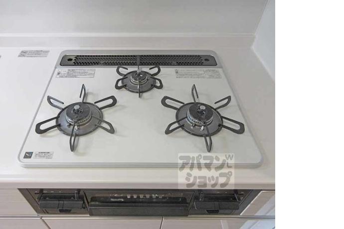 公営水道, 都市ガス, 下水, 専用バス, 専用トイレ, バス・トイレ別, シャワー, ガスコンロ, コンロ三口, システムキッチン, 給湯, 追い焚き, シャンプードレッサー, エアコン, 室内洗濯機置場, BSアンテナ, CSアンテナ, オートロック, エレベーター, バルコニー, フローリング, 駐輪場あり, バイク置き場あり, TVドアホン, 温水洗浄便座, 独立洗面台, 防犯カメラ, 照明, シューズボックス