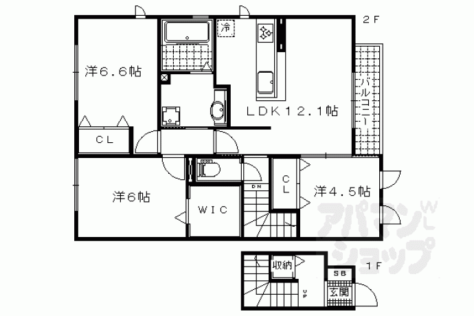 洋6.6×洋6×洋4.5×LDK12.1