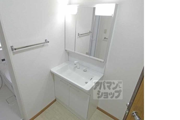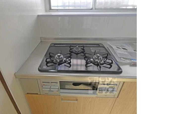 公営水道, 都市ガス, 下水, 専用バス, 専用トイレ, バス・トイレ別, シャワー, ガスコンロ, コンロ三口, システムキッチン, 給湯, シャンプードレッサー, 室内洗濯機置場, 専用庭, バルコニー, フローリング, 駐輪場あり, TVドアホン, 温水洗浄便座, 独立洗面台, 2人入居可