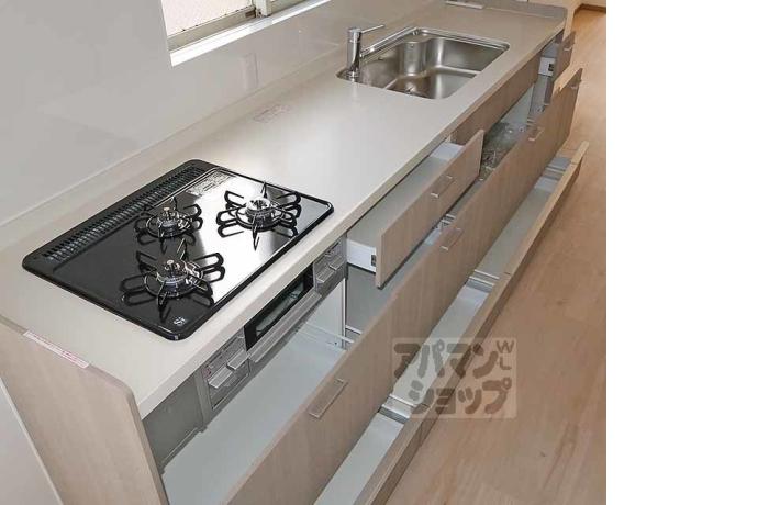 公営水道, 都市ガス, 下水, 専用バス, 専用トイレ, バス・トイレ別, シャワー, ガスコンロ, コンロ三口, システムキッチン, 給湯, 追い焚き, シャンプードレッサー, エアコン, ロフト付き, 室内洗濯機置場, バルコニー, フローリング, 駐輪場あり, TVドアホン, 温水洗浄便座, 独立洗面台, メゾネット, シューズボックス, 2人入居可