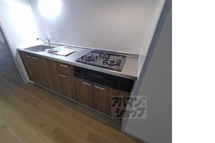公営水道, 都市ガス, 下水, 専用バス, 専用トイレ, バス・トイレ別, シャワー, ガスコンロ, コンロ三口, システムキッチン, 給湯, シャンプードレッサー, エアコン, 室内洗濯機置場, CATV, エレベーター, バルコニー, フローリング, 駐輪場あり, 光ファイバー, TVドアホン, 温水洗浄便座, 独立洗面台, 防犯カメラ, 事務所可, 2人入居可