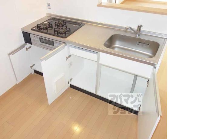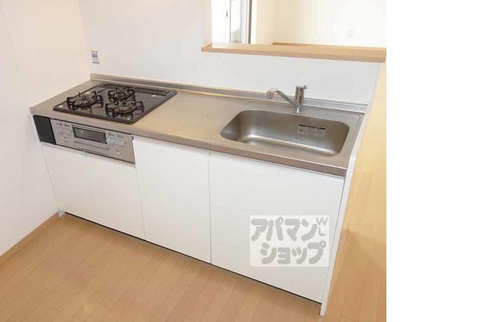 公営水道, 都市ガス, 下水, 専用バス, 専用トイレ, バス・トイレ別, シャワー, ガスコンロ, コンロ三口, システムキッチン, 給湯, 追い焚き, エアコン, 室内洗濯機置場, BSアンテナ, フローリング, 駐輪場あり, バイク置き場あり, 光ファイバー, 温水洗浄便座, カウンターキッチン, 独立洗面台, シューズボックス, 2人入居可