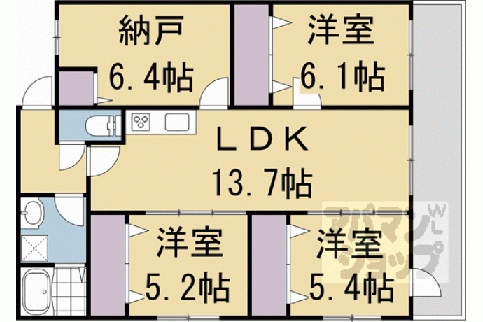 洋6.1×洋5.4×洋5.2×納6.4×LDK13.7