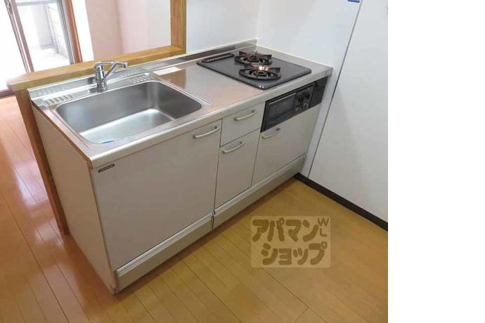 公営水道, 都市ガス, 下水, 専用バス, 専用トイレ, バス・トイレ別, シャワー, ガスコンロ, コンロ二口, システムキッチン, 給湯, シャンプードレッサー, エアコン, 室内洗濯機置場, BSアンテナ, オートロック, バルコニー, フローリング, 宅配ボックス, 駐輪場あり, 光ファイバー, TVドアホン, 温水洗浄便座, カウンターキッチン, 浴室乾燥機, 独立洗面台, 防犯カメラ, インターネット利用料無料, カードキー, シューズボックス