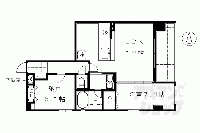 洋7.4×納6.1×LDK12