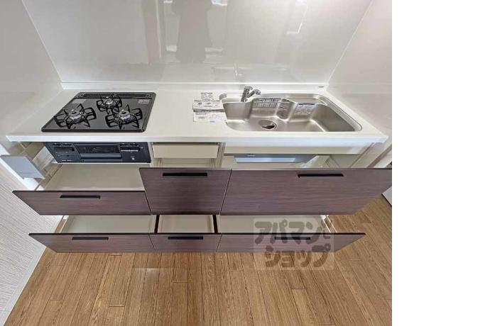 公営水道, 都市ガス, 下水, 専用バス, 専用トイレ, バス・トイレ別, シャワー, ガスコンロ, コンロ三口, システムキッチン, 給湯, 追い焚き, シャンプードレッサー, エアコン, 室内洗濯機置場, BSアンテナ, オートロック, エレベーター, バルコニー, フローリング, 駐輪場あり, 光ファイバー, 角部屋, TVドアホン, 温水洗浄便座, 敷地内ゴミ置場, 独立洗面台, シューズボックス, 2人入居可