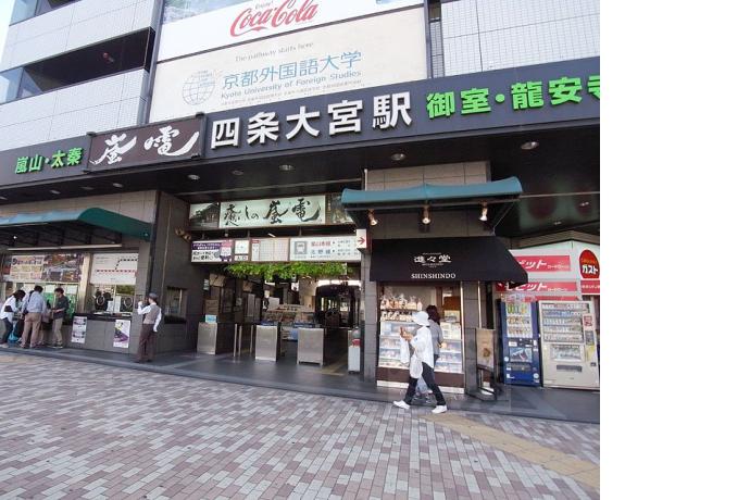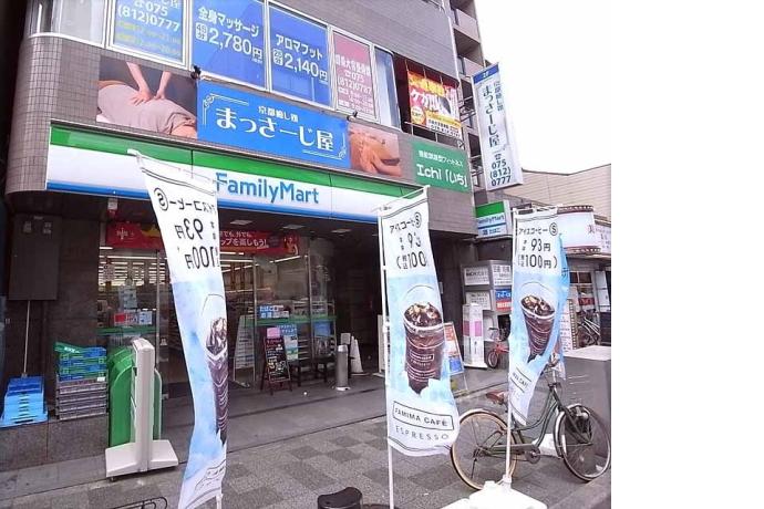 スーパー(フレスコ 大宮店)400m、コンビニ(ファミリーマート四条猪熊店)210m、ドラッグストア(ドラッグユタカ 四条大宮店)400m