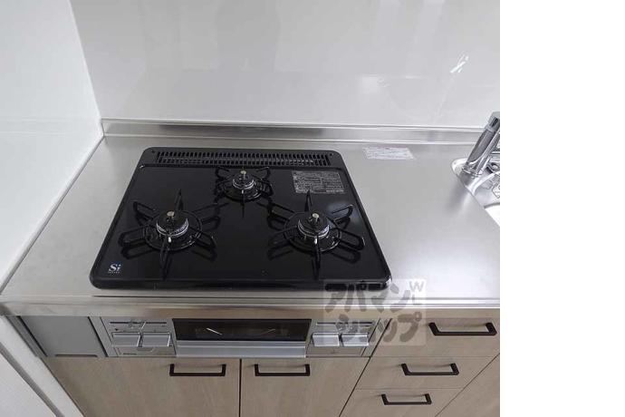 公営水道, 都市ガス, 下水, 専用バス, 専用トイレ, バス・トイレ別, シャワー, ガスコンロ, コンロ三口, システムキッチン, 給湯, エアコン, 室内洗濯機置場, バルコニー, フローリング, 駐輪場あり, 光ファイバー, 角部屋, TVドアホン, 温水洗浄便座, 独立洗面台, インターネット利用料無料