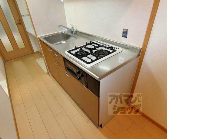 公営水道, 都市ガス, 下水, 専用バス, 専用トイレ, バス・トイレ別, シャワー, ガスコンロ, コンロ二口, システムキッチン, 給湯, シャンプードレッサー, エアコン, 室内洗濯機置場, BSアンテナ, オートロック, バルコニー, フローリング, 駐輪場あり, 光ファイバー, 浴室乾燥機, 敷地内ゴミ置場, 独立洗面台, 保証人不要