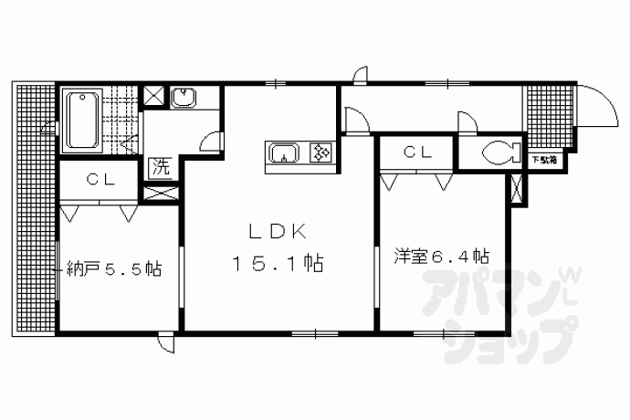 洋6.4×納5.5×LDK15.1