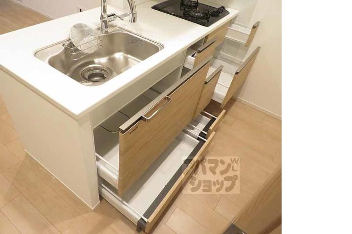 公営水道, 都市ガス, 下水, 専用バス, 専用トイレ, バス・トイレ別, シャワー, ガスコンロ, コンロ二口, システムキッチン, 給湯, 追い焚き, エアコン, 室内洗濯機置場, オートロック, エレベーター, フローリング, 宅配ボックス, TVドアホン, 浴室乾燥機, 敷地内ゴミ置場, 独立洗面台, ペット相談